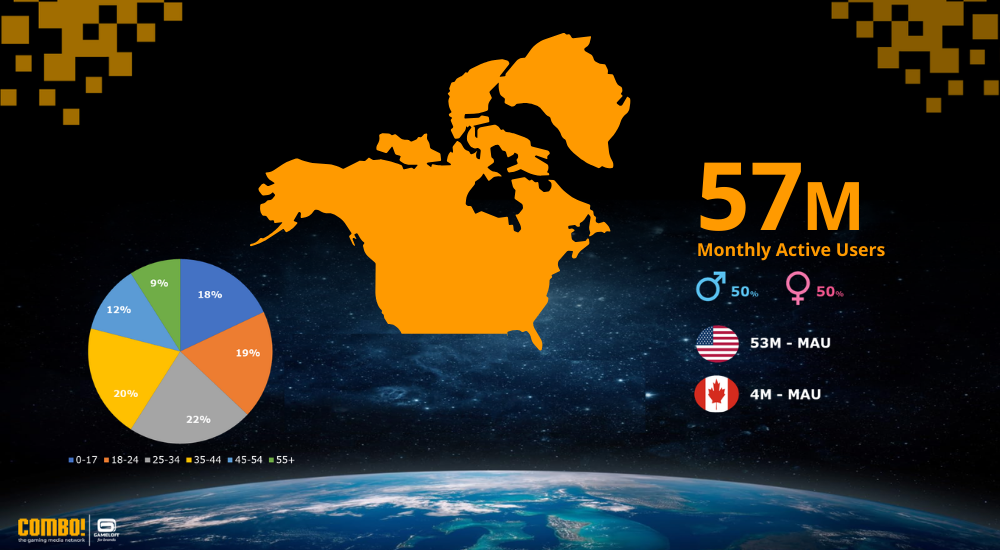 In North America, COMBO! reaches 57 million monthly users, with a balanced gender split. The strongest segment is aged 25–44, representing a mature audience with significant purchasing power. For brands, this presents an opportunity to combine entertainment-driven campaigns with more sophisticated, commerce-oriented activations to offer meaningful experiences that go beyond gaming itself.