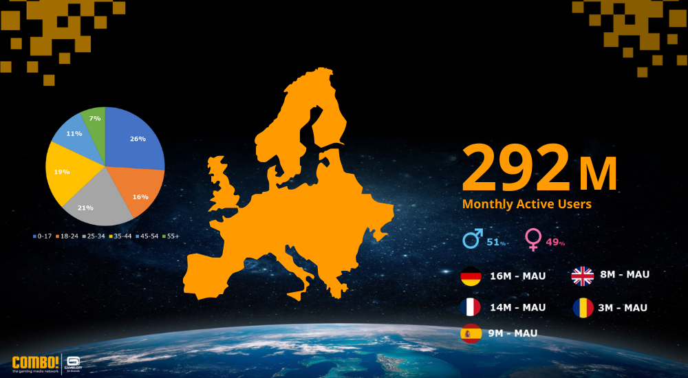 Gaming in 2026 has grown into a global, diverse, and highly engaged ecosystem. Through COMBO! brands can reach a massive audience of 1.3 billion monthly active players worldwide, with 53% male and 47% female.